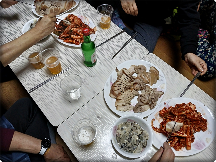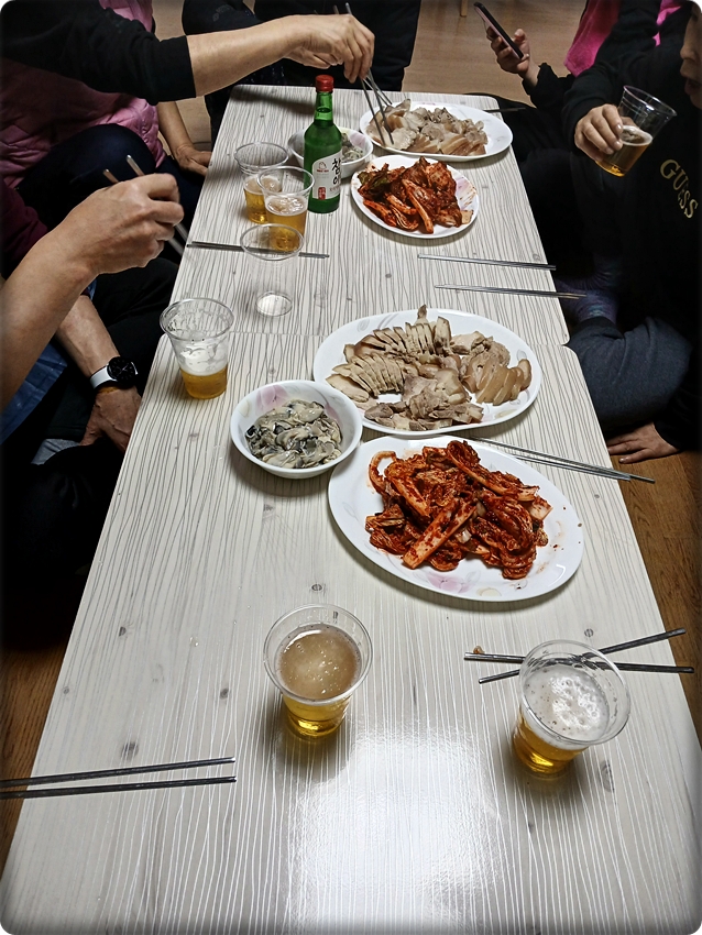 올해는 김장을 작년보다 조금 늦게 시작했다. 힘을 절약하기 위해 김장 배추는 미리 절여서 배달 하는 곳을 택해 140여 포기를 주문을 했고, 배추속 재료들은 직접 시장에서 구입해 고향 특유의 맛을 자아내게 하였는데 해마다 이렇게 함께 김장을 하는 것이 연례 행사가 된지 벌써 십 수년이 되어 간다. 요즘은 시장에서 만들어진 김치를 구입해 먹는 가정이 늘어나지만 내 입에는 맛의 차이가 엄청나 이렇게 직접 김장을 해서 먹는게 일상화되어 버린지 오래다.